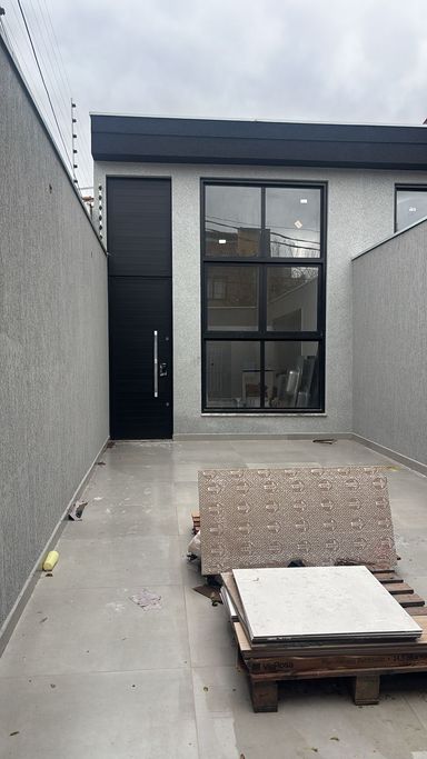 147 M2 área construída. Terreno 4x30. 2 a 3 vagas 🚖🚖🚘🚘 Sala e cozinha ampla. Área de serviço. Área de churrasqueira nos fundos🍺🥓🔥🥩 3 suítes 🚿🛁. Pé direito duplo. Portas especiais pormade. Porcelanato 90x90. Lavatórios em quartizo. Travertino. Escada em granito preto e vidro. Todos os ambientes rebaixado em gesso. Luminárias. Tudo em alumínio preto fosco. O mais lindo da região. Sistema de energia solar para aquecimento da água. Cerca elétrica. Sistema para câmera de segurança.