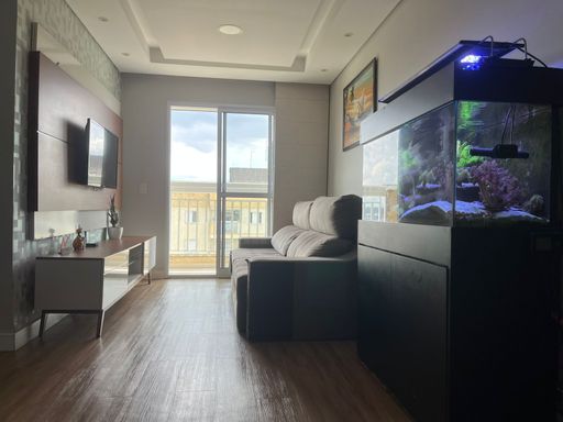 Apartamento de 48m, no 4º andar com elevador, sala 2 ambientes com sacada, cozinha com planejados, banheiro, 2 dorms, 1 vaga fixa e descoberta. condomínio: R$300,00 Com água e gás incluso. Iptu é isento.