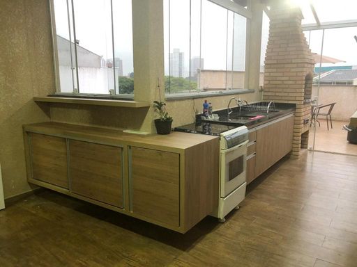 Linda Cobertura duplex de 114m, prédio de 3 andares, escada, com planejados, com 2 dorms sendo 1 suíte, 1 vaga, amplo espaço gourmet. Frente para rua. Próximo a linha do trólebus