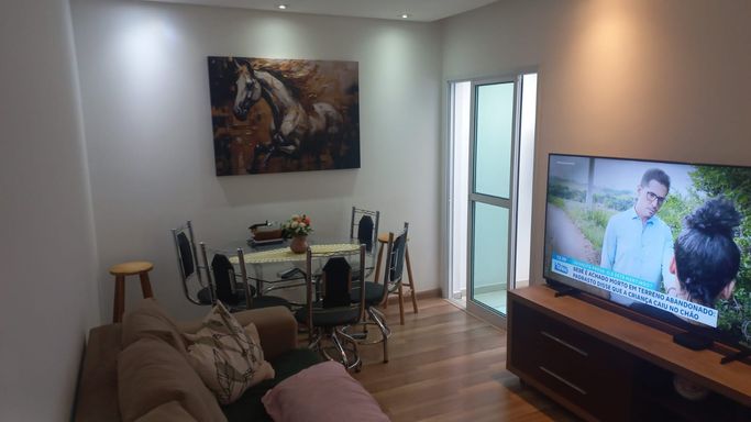 Linda cobertura com todos os ambientes no mesmo piso, comodidade, integração e lazer, capricho nos minimos detalhes, com 2 dormitórios sendo 1 suíte, sala 2 ambientes com sacada, cozinha com planejados, móveis planejados em todos os ambientes, localizada no 13º andar com vista panoramica. Excelente localização, próximo ao Atacadao Sao Jorge, Hospital, comércios, escolas.
