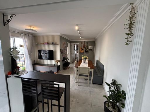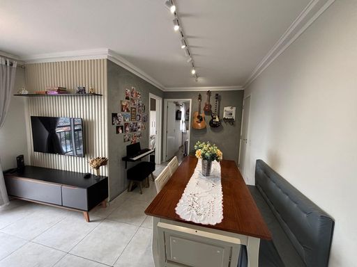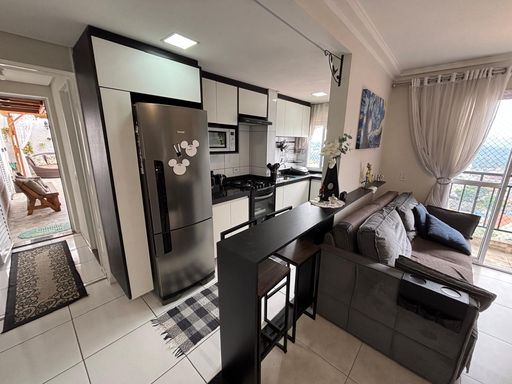 Linda cobertura com todos os ambientes no mesmo piso, comodidade, integração e lazer, capricho nos minimos detalhes, com 2 dormitórios sendo 1 suíte, sala 2 ambientes com sacada, cozinha com planejados, móveis planejados em todos os ambientes, localizada no 13º andar com vista panoramica.