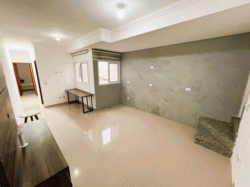 Linda Cobertura duplex de 114m, prédio de 3 andares, escada, com planejados, com 2 dorms sendo 1 suíte, 1 vaga, amplo espaço gourmet.