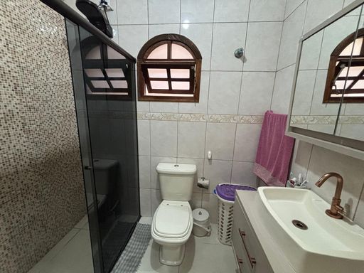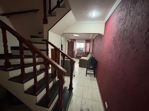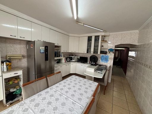 Super Oportunidade!!! Entrar e morar, sobrado com 2 vagas paralelas e cobertas, sala ampla de estar, banheiro, copa/ cozinha ampla com planejados, corredor lateral, espaço gourmet com churrasqueira, ampla lavanderia, quarto da bagunça, banheiro, piso superior com 3 dormitórios sendo o principal com ampla varanda e um banheiro.