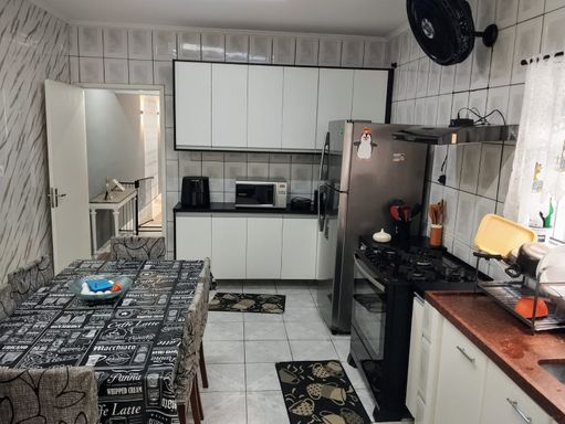 Sobrado com 3 dormitórios, mais um quarto de dispensa, 2 banheiros, 2 vagas, sala ampla dois ambientes, moveis planejados.
