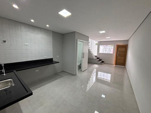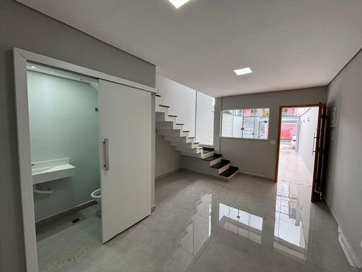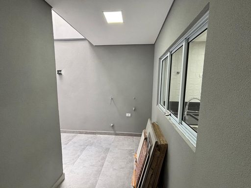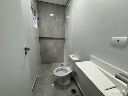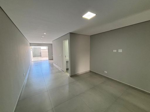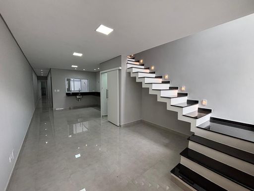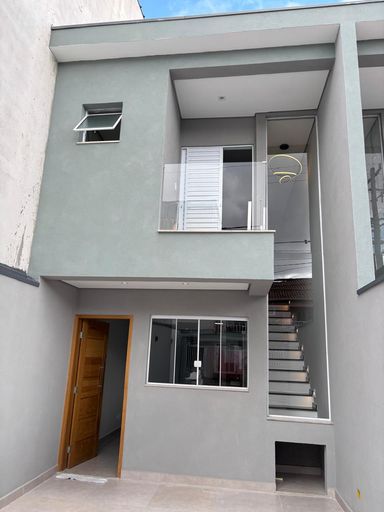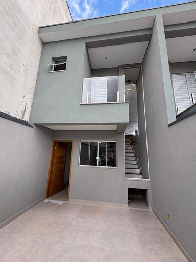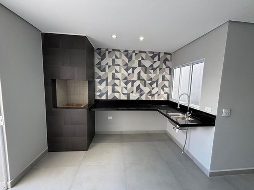 Lindo Sobrado com fachada moderna, terreno 4 x 30m, com 140 metros de área construída, com 3 suítes, 2 vagas, amplo espaço gourmet com churrasqueira e quintal com ducha.