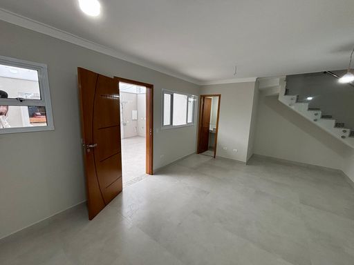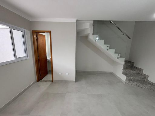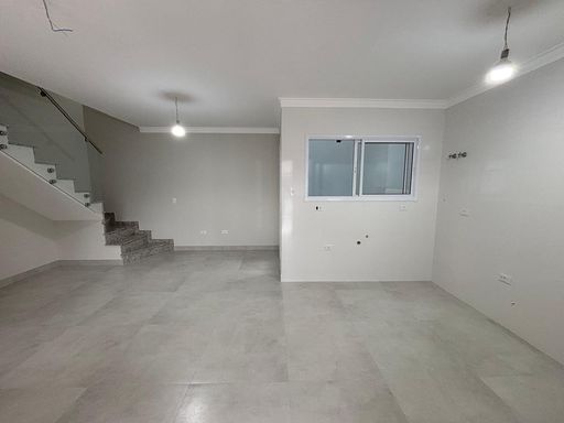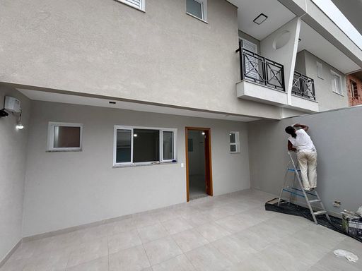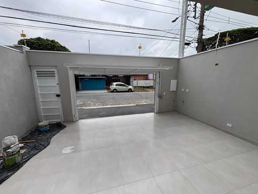 Sobrado em fase final de acabamento, com 86 m de área construída, com 3 dorms sendo 1 suíte, 2 vagas paralelas, sala integrada a cozinha, lavabo, banheiro no piso superior, ponto na lateral da garagem para espaço gourmet.