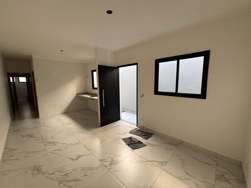Casa sobreposta com quintal para espaço gourmet, com 3 dormitorios sendo 1 suite e 2 vagas.