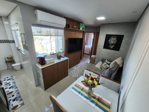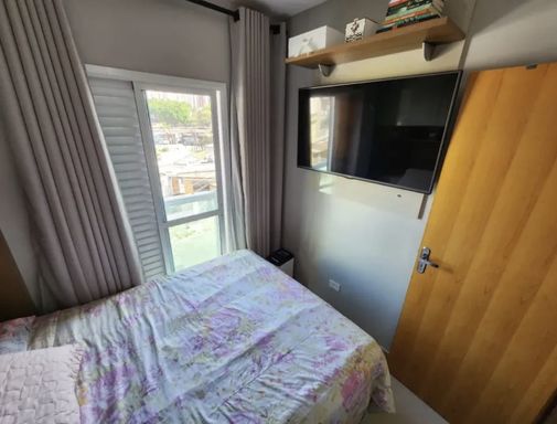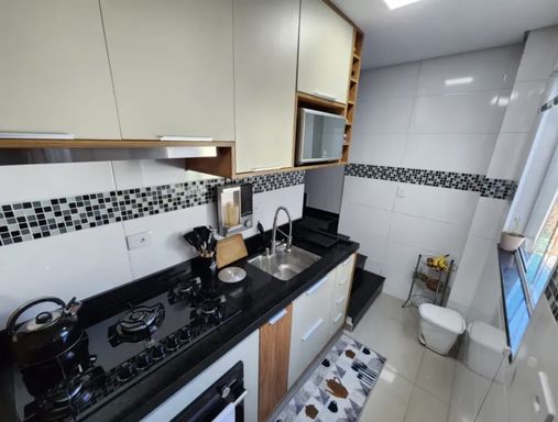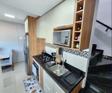 Linda Cobertura com 92m, em predio de 3 andares com escadas, moveis planejados, com 2 dorms, 1 banheiro, sala, cozinha, Espaço Gourmet com churrasqueira e lavabo, área de serviço, com portas de vidro, ar condicionado, fechadura eletronica.